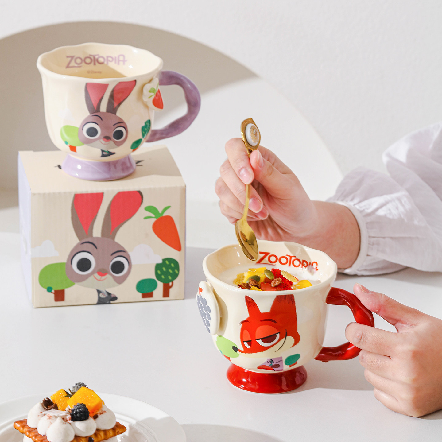 【立减10+**】正版授权《疯狂动物城》马克杯!朱迪&尼克萌趣设计,食品级陶瓷材质,安全无毒,孩子用也放心~附赠趣味清洁小刷,杯身光滑易洗不挂污,日常+送礼双场景轻松拿捏!