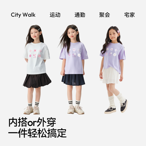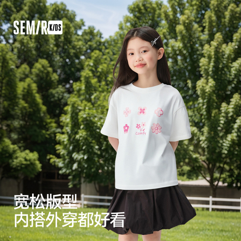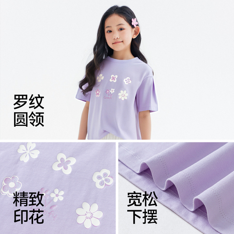 森马儿童短袖T恤2025夏新款纯棉内搭甜美印花上衣女童装圆领百搭