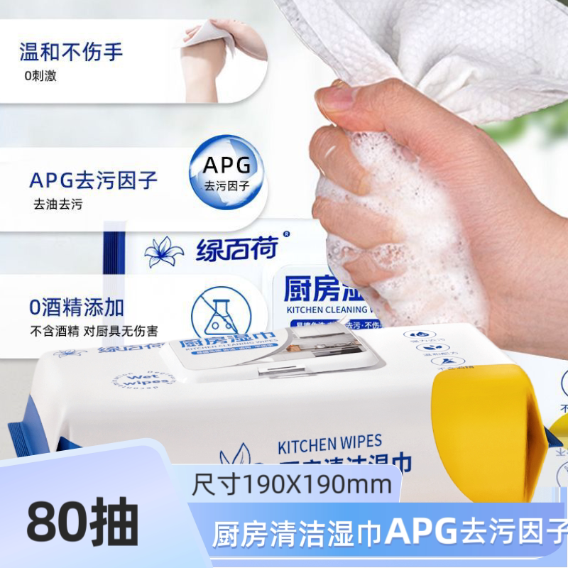去油去污家用厨房去油污湿纸巾,去污不留痕,珍珠纹水刺无纺布,特含去污因子,快速分解油污,厨房去油好帮手