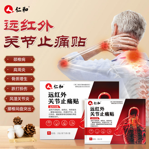 仁和远红外止痛贴,10贴/盒,专为肩周炎、颈椎病、腰椎问题设计,有效舒筋活血,缓解疼痛。