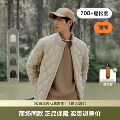 【鹅绒】波司登新品男士轻薄羽绒服经典鹅绒款菱形格百搭立领保暖