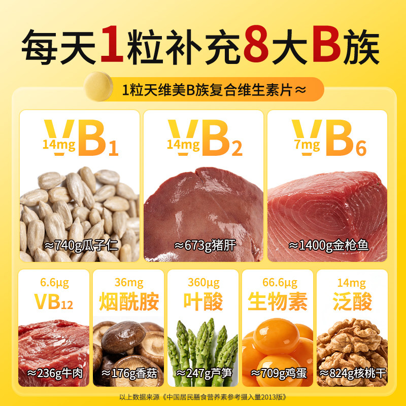 【右上角点“领淘金币”拍,淘金币抵扣8.1,到手57.9】天维美B族复合维生素片b12补充b 超赞~