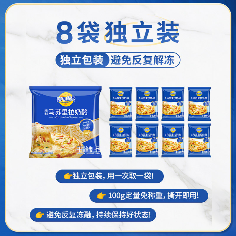 秒杀立减20.1元+券3元+超市**4元+88vip省2.15元+点击有上角三个点进入淘金币抵扣3.5元后约34.25元,喵满分×妙可蓝多,精制马苏里拉奶酪,烘焙原料芝士碎,800g,内含8袋独立包装