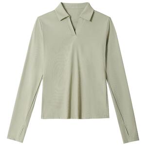 骆驼户外速干POLO衫女打底衫长袖V字弹力抗皱凉感透气吸湿防晒T恤