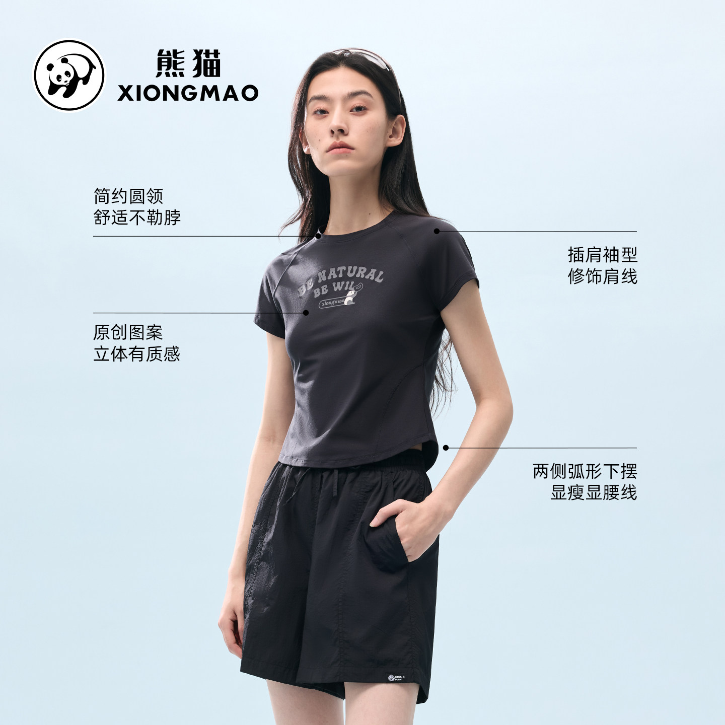 骆驼旗下•熊猫修身速干短袖 吸湿速干!出汗也不黏腻!紫外线阻隔率≥98%!! 骆驼旗下的!收腰版型很显瘦,怎么搭都好看!
