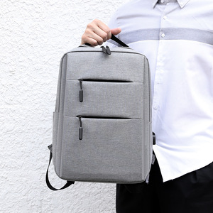 A1-开学简约商务双肩包男士大容量学生电脑包多口袋灰色背包