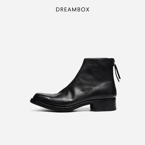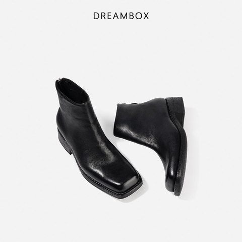 dreambox钧博知性高雅女靴纯手工真皮极简风切尔西靴粗跟厚底皮靴