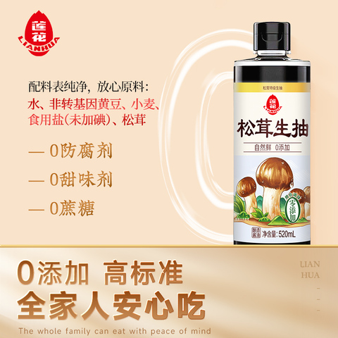 莲花松茸特级生抽0添加酿造酱油520ml*2瓶凉拌炒菜红烧调料百搭