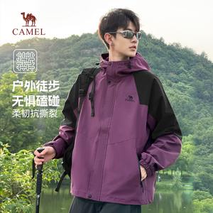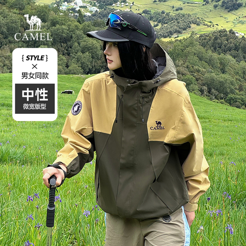 骆驼夹克连帽冲锋衣防水