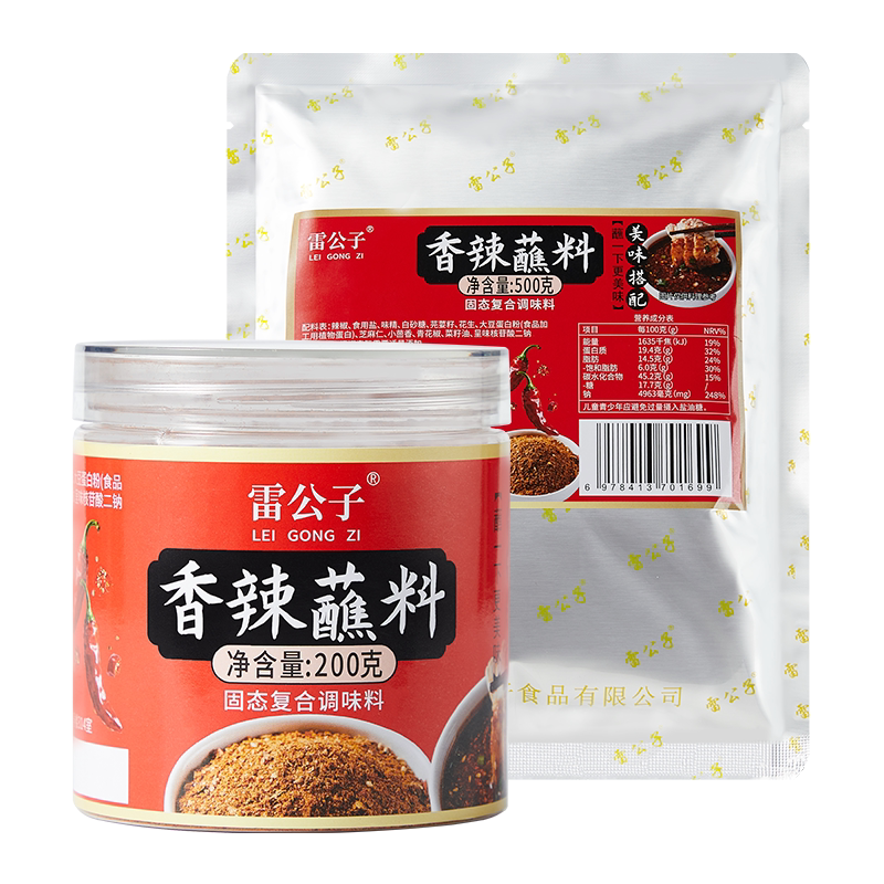 雷公子香辣蘸料,火锅烧烤必备!香辣过瘾,口感浓郁,一碟搞定所有美味。超值优惠不容错过!