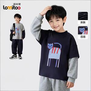 洛米兔2026春新品假两件卫衣不带帽亲肤百搭儿童拼接袖爆款卫衣