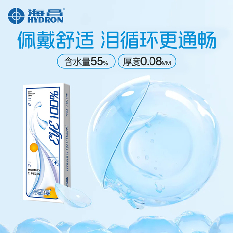 2片装 海昌水润月抛隐形眼镜 eye100近视透明新手佩戴非季抛镜片