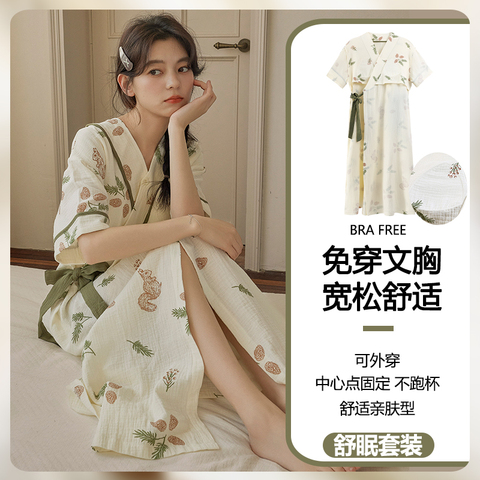 【帕兰朵】帕兰朵云朵棉复古风睡裙!温柔气质girl必备!带胸垫三件套家居服!!云朵棉棉品质!舒适柔软!细节做工堪称完美!穿着透气舒适~做工贼好!穿着睡觉真的巨巨巨舒服~赠运费险