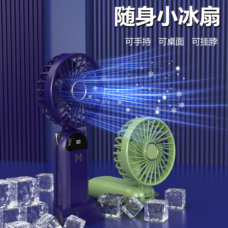 水果挂脖 数显折叠带支架手持小风扇桌面USB充电手持学生补水喷雾