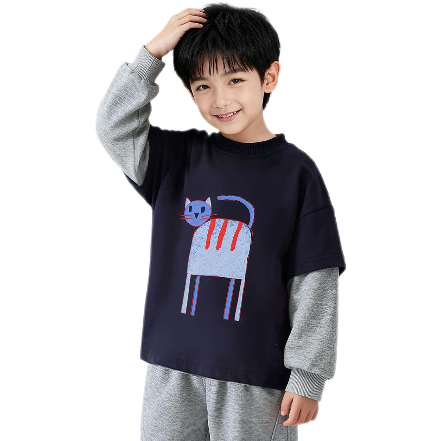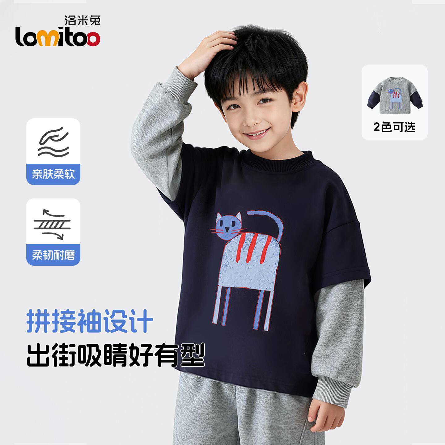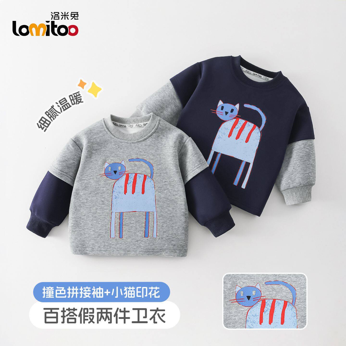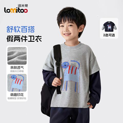洛米兔2026春新品假两件卫衣不带帽亲肤百搭儿童拼接袖爆款卫衣