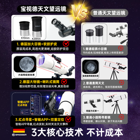 德国宝视德儿童天文望远镜,中小学生专用入门级,高倍高清,适合女男孩礼物。超值优惠,激发孩子探索宇宙兴趣,快抢!