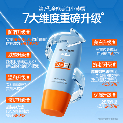 Mistine蜜丝婷防晒霜美白小黄帽 【售价】:¥164.40 【券后】:¥89.40 【优惠券】:¥75 推荐理由:【爆款推荐】大牌美妆品牌,持久防晒,轻薄水润,滋润自然,美白不油腻,清香萦绕,呵护你的美丽夏天【赠运费险】 👉复制这条信息打开【手机淘宝APP】即可领券购买:/