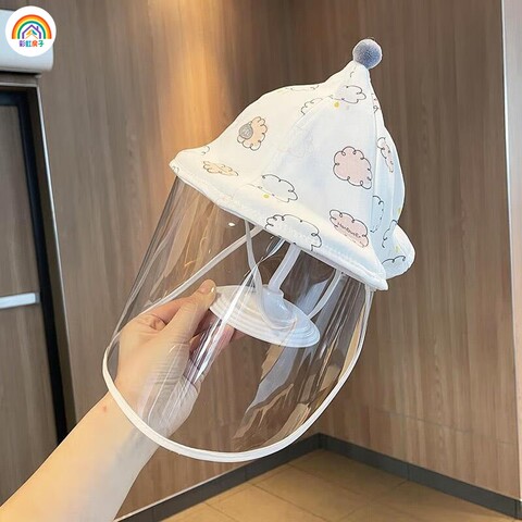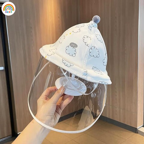彩虹房子婴儿防护面罩新生儿防护帽遮阳渔夫帽卡通动物防飞沫隔离