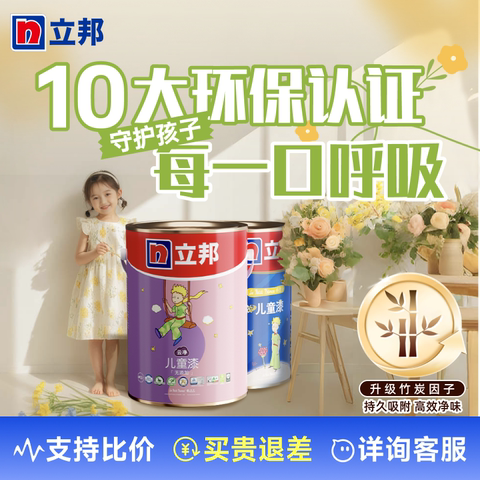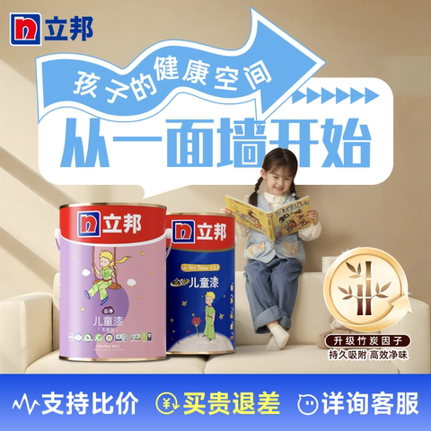 立邦云净儿童漆小王子乳胶漆室内家用儿童房涂料抗甲醛墙面漆油漆 【售价】:¥925.00 【券后】:¥900.00 【优惠券】:¥25 推荐理由:【国补15%,叠满800减80元,到手低至778.78元,部分地区有,需自测】有效抵御11种细菌和11种霉菌,打造安全家居环境,持续净化空气中的游离甲醛,守护宝宝健康;抵御各种生活污渍,打理更省心。 👉复制这条信息打开【手机淘宝APP】即可领券购买:/