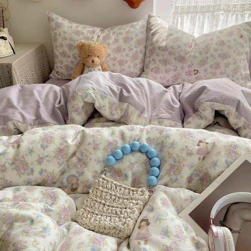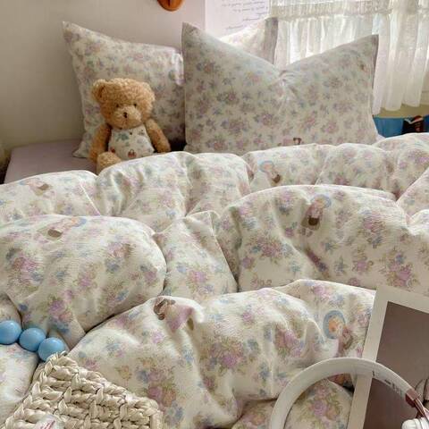 A类床上四件套纯棉母婴级双层纱ins裸睡床单被套罩宿舍三件套床品
