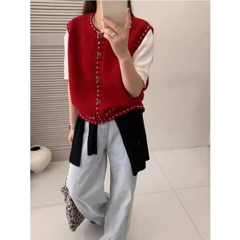 2026春款叠穿新款宽松复古针织毛衣马甲女背心韩版百搭外穿外套L2