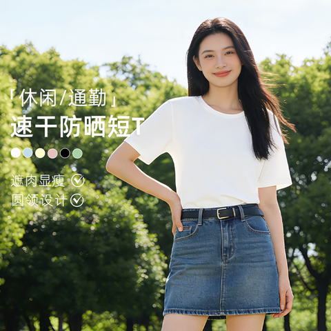 【叠加服饰券299减20+消费券到手58,折合单件19】2026新款雪中飞女式短袖T恤,冰丝材质防晒透气,半截袖设计适合户外运动,轻盈舒适,夏季穿搭首.选!