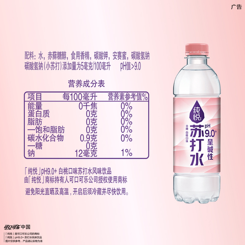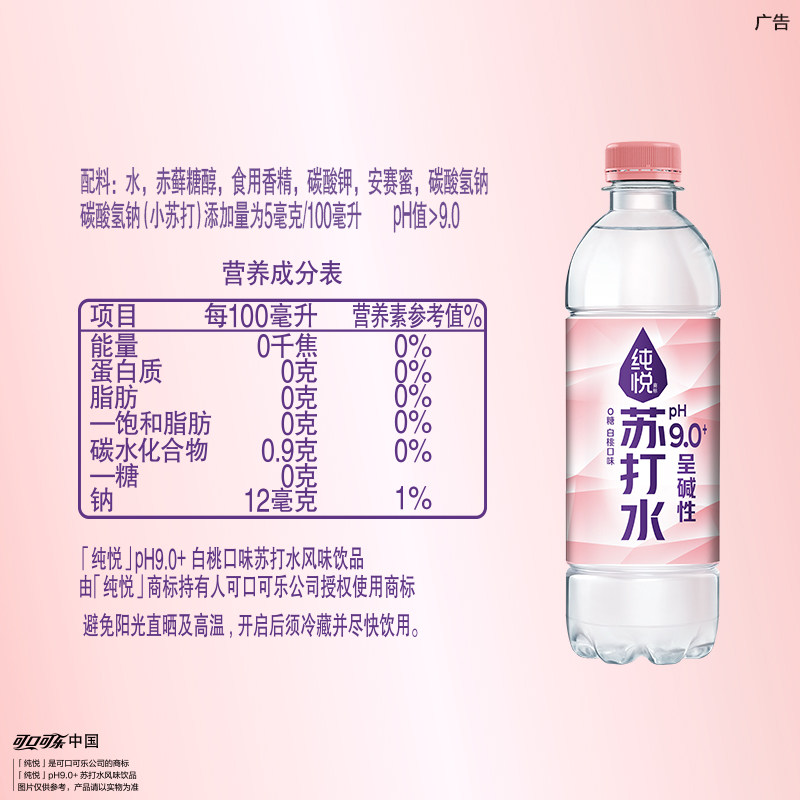可口可乐 纯悦苏打水PH9.0+白桃口味整箱水