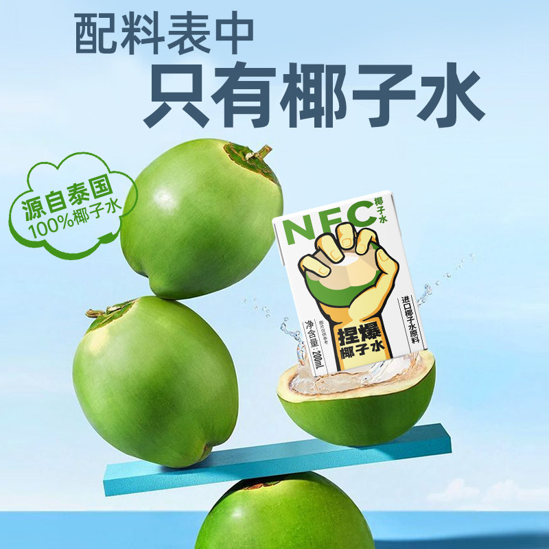 【叠加首单到手17】哪吒捏爆NFC椰子水泰国进口椰子汁植物饮料0脂肪运动补水。
