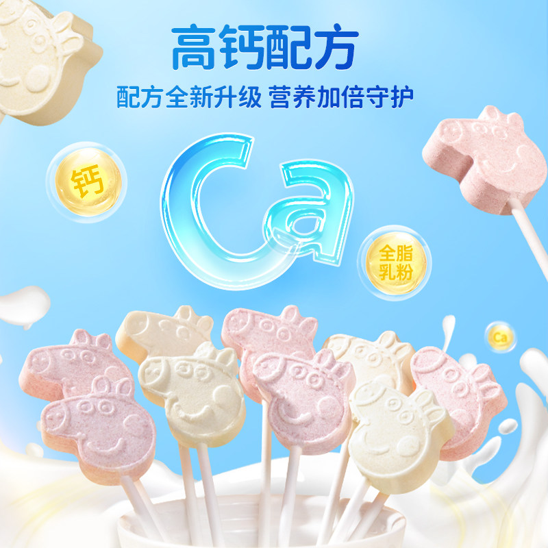 亿智小猪佩奇高钙牛乳棒60支 原味草莓味混合装儿童营养进口乳粉