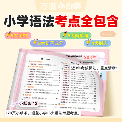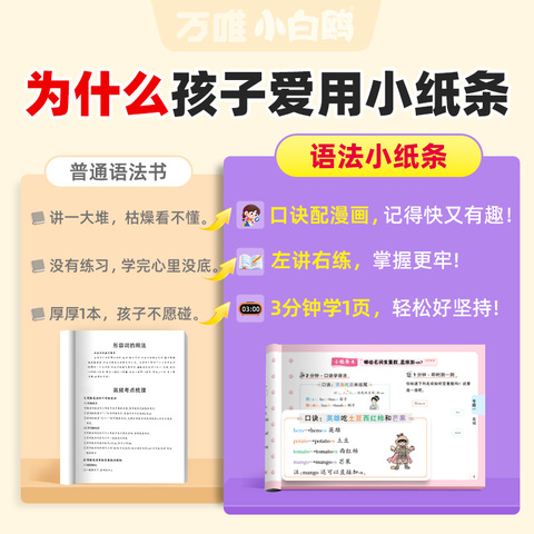 2026版万唯小白鸥英语语法小纸条,5-6年级适用,每日一练,口诀助记+视频讲解,轻松提升英语成绩!