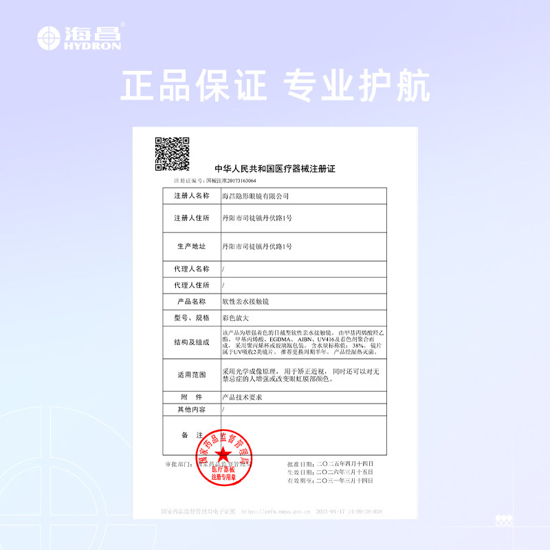 优选海昌美瞳半年抛女1片彩色近视隐形眼镜。