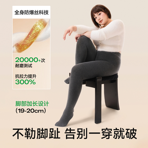 菇娘家热压连裤袜高支棉羊毛灰色打底裤女大码秋冬黑色保暖瘦腿袜