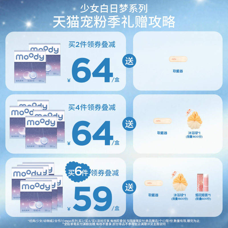 moody美瞳日抛小moo系列快乐小新大直径彩色隐形眼镜10片正品官旗