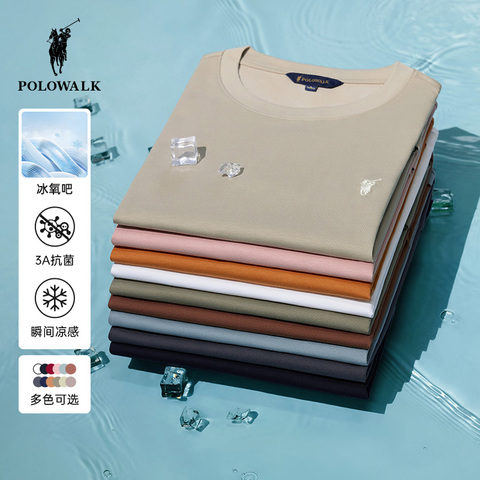 【冰氧吧】POLOWALK短袖t恤男士夏季新款圆领百搭简约时尚凉感T恤