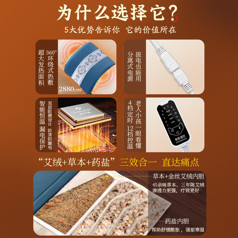 电加热海盐袋热敷包粗盐包理疗袋子艾灸包肩颈椎腰带膝盖全身通用