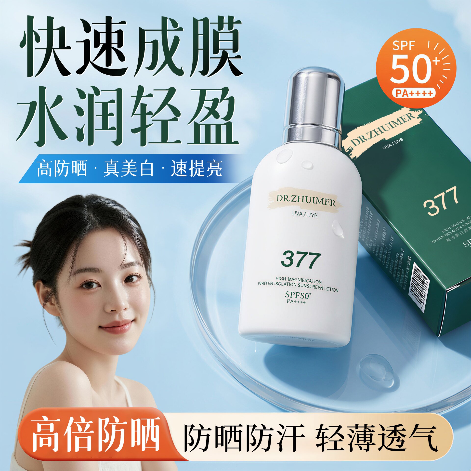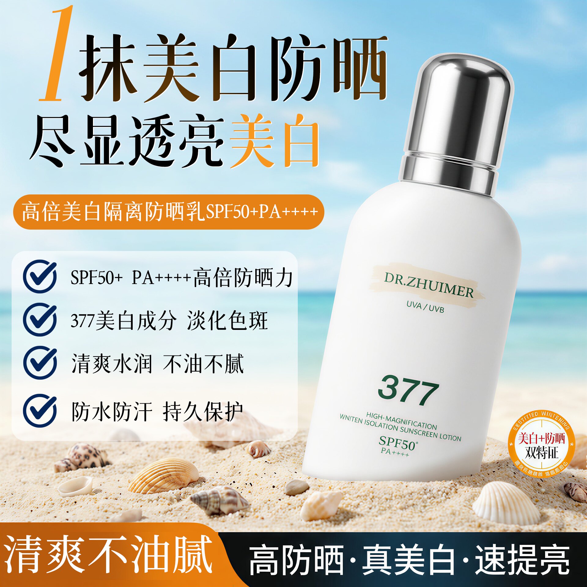 【冲量秒杀2瓶】美博士防晒霜50倍高倍防护,清爽不油腻,适合面部和身体使用,男女通用!一瓶多用,美白防晒二合一,夏日必备!