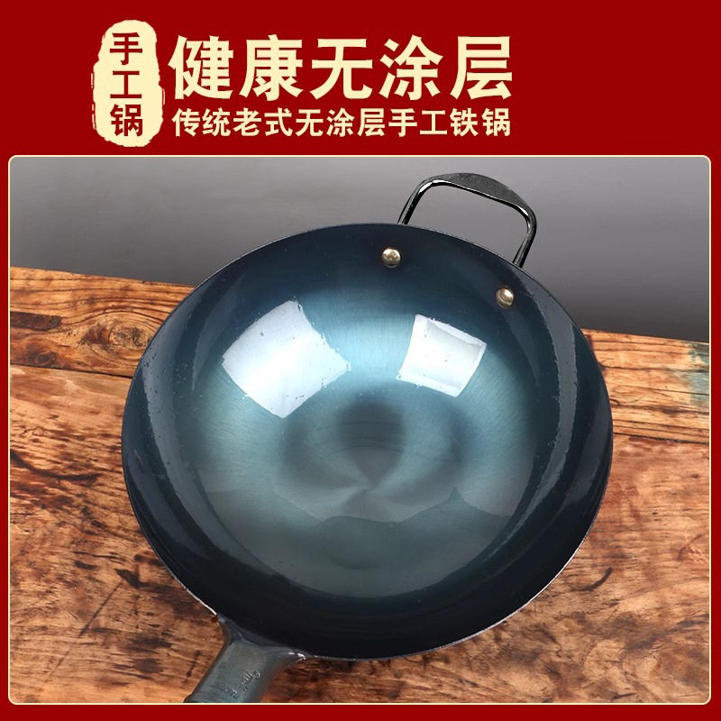 章丘手工铁锅炒菜锅家用炒锅不粘锅老式饭店厨师商用大马勺已开锅