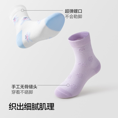 五双装撞色设计儿童棉袜,柔软亲肤,弹性好,适合春秋穿着。女童中筒款,提花细节更显精致,舒适保暖,呵护小脚丫!