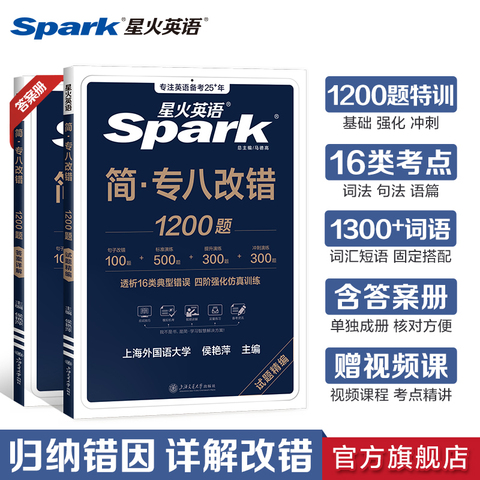 限时红包1元,到手14.8【星火英语】大学英语专业8级改错专项训练!历年真题,2026备考试卷资料,上海外国语出版社!易错题快速改正提分!