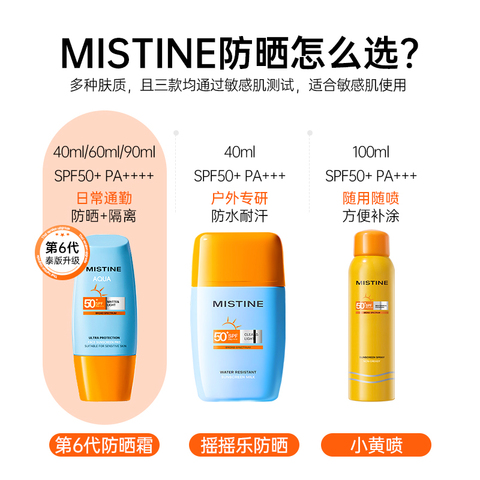 泰版Mistine小黄帽防晒霜乳,学生军训必备!官方正品,清爽不油腻,SPF50+PA++++高效防晒,专为学生设计,男女通用,呵护肌肤不受紫外线伤害!