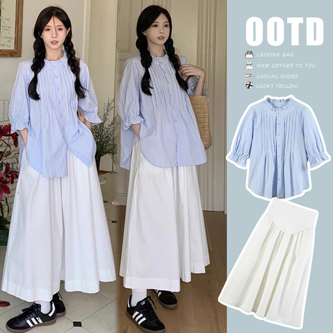 婧麒孕妇套装夏装2026新款连衣裙,短袖上衣半身裙子孕妈高级穿搭女