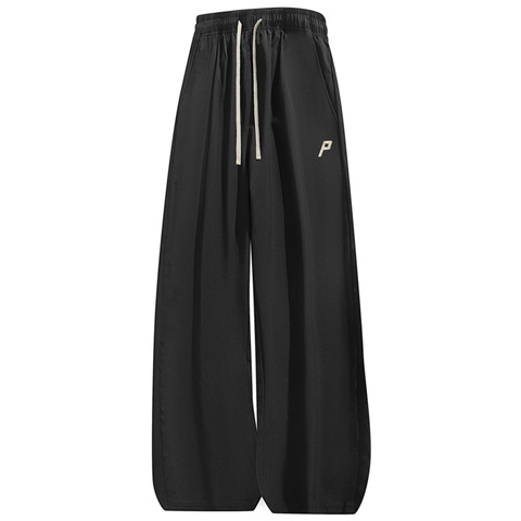BUFFALO BOUND黑色冰丝直筒男女透气直筒刺绣裤夏季薄款户外运动