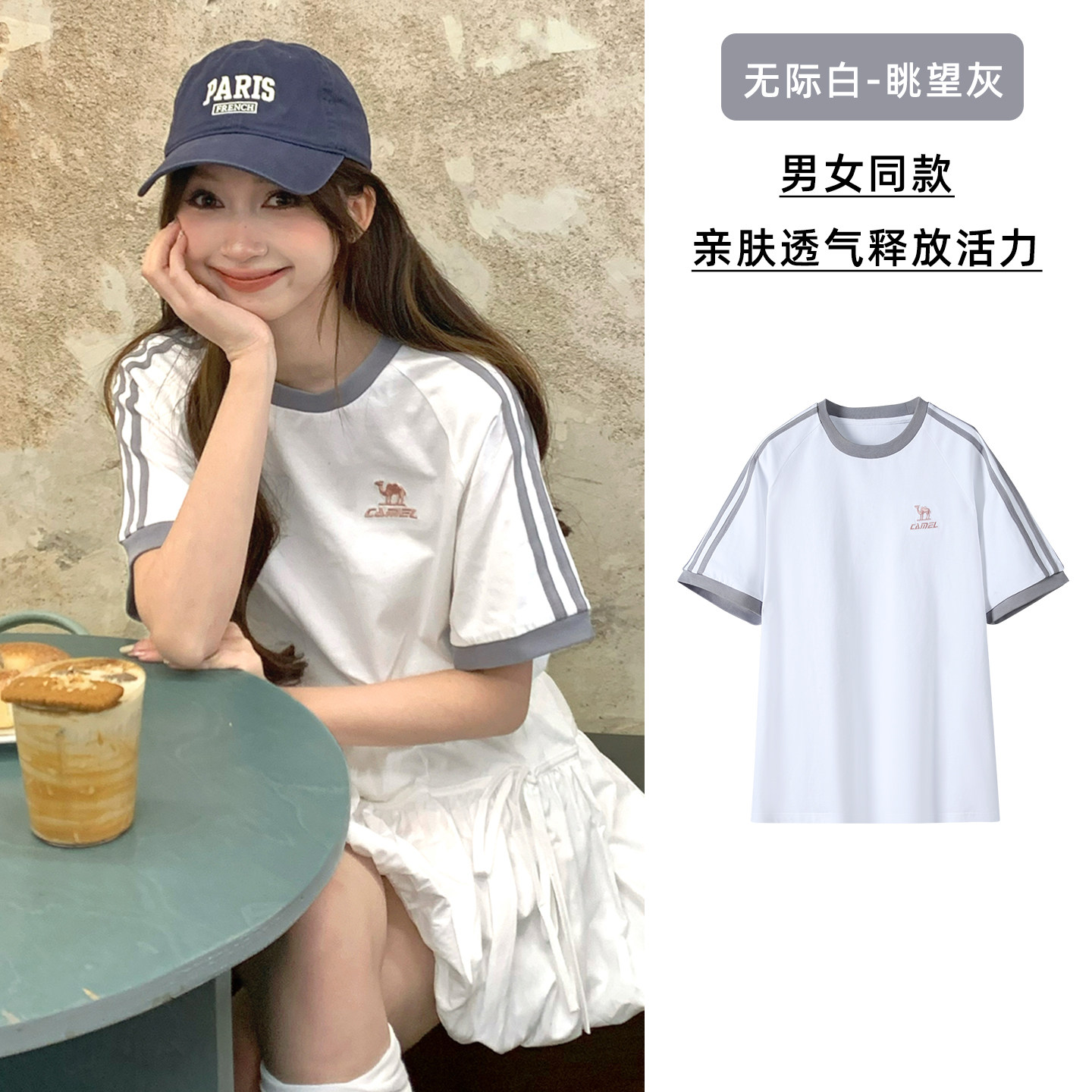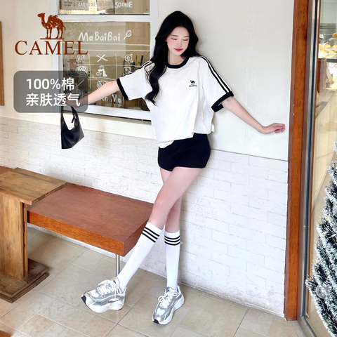 骆驼短袖夏日纯棉T神运动T恤女夏美式宽松情侣宽松复古休闲上衣男