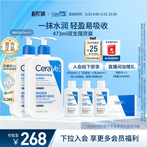 【淘金币抵扣8.76元+11.27元淘礼金+88VIP200-25消费券,到手仅138左右】【赠C乳30ml*2,会员加赠C乳30ml】CeraVe适乐肤官方旗舰店身体乳C乳液236ml*2+赠90ml