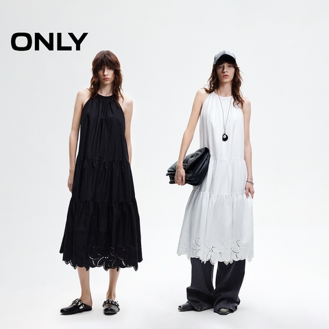 ONLY2025秋冬新款活力减龄纽扣拼接裙摆显瘦无袖长裙连衣裙女