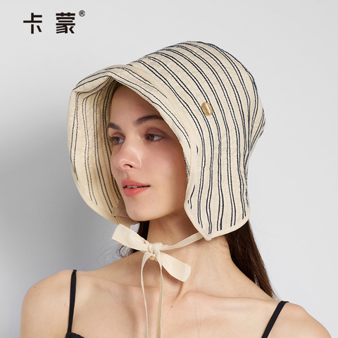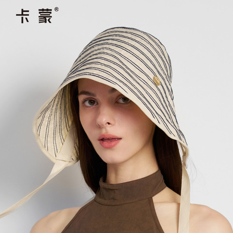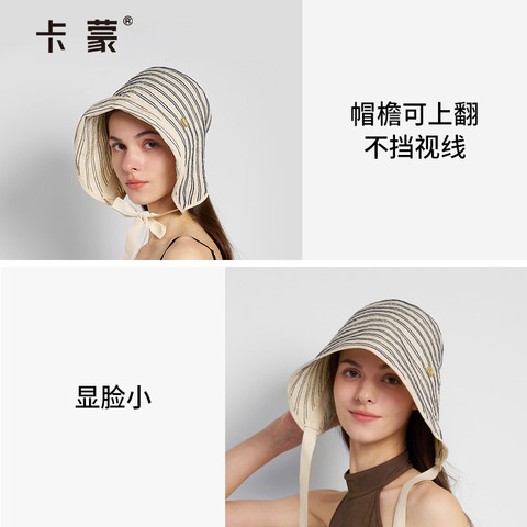 卡蒙帽子渔夫帽系带蛋卷全脸防晒帽女大头围大帽檐遮阳帽防紫外线