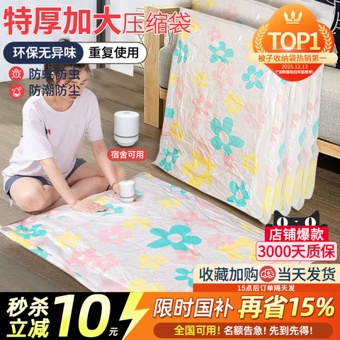 【淘金币抵扣0.5元+消费卷凑单更低】柜子里的衣物都变的拥挤凌乱,尤其是选不定合适的收纳方式,乱糟糟的衣柜会让人糟心不已!!这款真空压缩收纳袋,瞬间压缩空间,让你的房间变的更加干净整洁!!