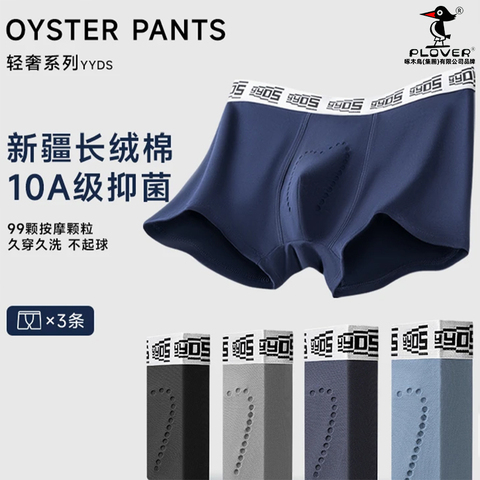 Plover生蚝素男士内裤,纯棉材质透气舒适,10A抗菌技术,有效抑菌防异味。四角短裤设计贴身不勒,按摩颗粒提升穿着体验。