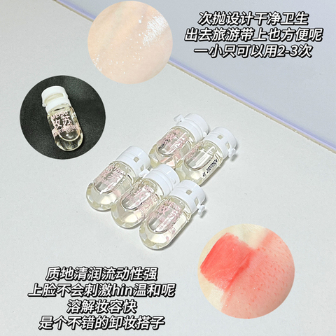 玫苏次抛卸妆油,敏感肌专属!5瓶装便携设计,温和不刺激,轻松清洁不残留,旅行出差必备!