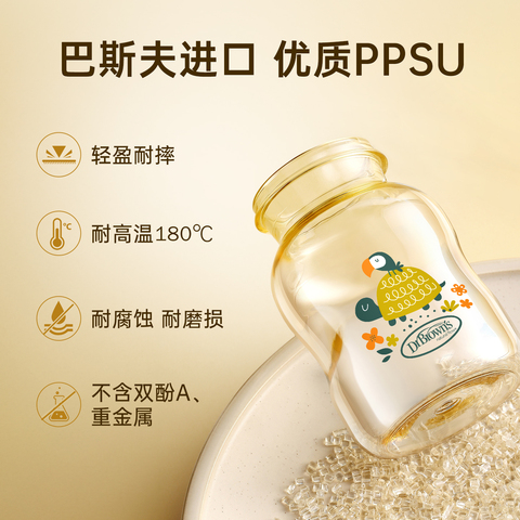 布朗博士PPSU奶瓶,0-9个月宝宝专用,防胀气设计,减少宝宝呛奶风险,耐摔更安全,呵护娇嫩肠胃!